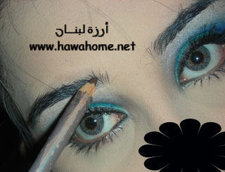ونضعه في طوية العين متل الصور من بعد الشدو التركوازي الى اخر العين