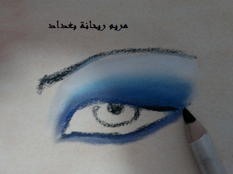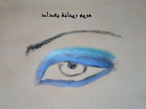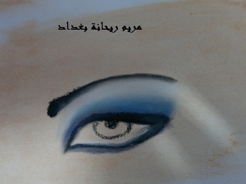 من اساسيات مكياجها هي وضع درجة شدو غامق على الجفن المتحرك او حول العين ويبدا بالتدرجات بعدين المهم نختار اللون الغامق بالبداية