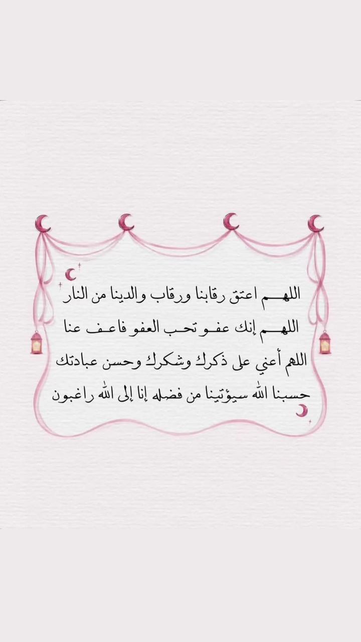 من القلب 💖 اللهم الهمنا ابتسامه لا تغيب وصبرا لا ينفد .. وحمدا لك لا ينقطع .. 🍃 اللهم بلغنا ليلة القدر واكتبنا من عتقائك من النار ولا تخرجنا من هذه العشر الاواخر من رمضان.. إلا وقد غفرت لنا ذنوبنا وفتحت لنا أبواب الرزق والسعادة وابعدت عنا وعن جميع المسلمين كل مرض وشر ربنا ونسألك حسن الخاتمه في الدنيا والاخرهآمين 🍃🍃🍃. 🍃🍃من القلب 💖 اللهم الهمنا ابتسامه لا تغيب وصبرا لا ينفد .. وحمدا لك لا ينقطع .. 🍃 اللهم بلغنا...