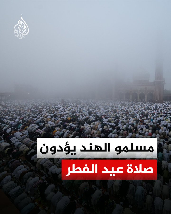 مسلمو الهند يؤدون صلاة عيد الفطر وسط أجواء ضبابية في الجامع الكبير بالحي القديم في العاصمة نيودلهي
