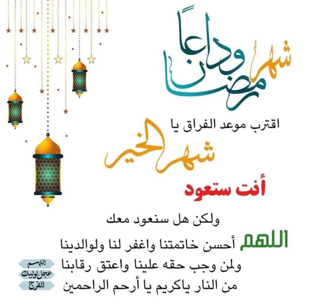 اللهماجعـل ختام رمضان فاتحة الخير لأجمل أيامنا وأكثرها طمأنينة وسلام ورضـا يارباللهماجعـل ختام رمضان فاتحة الخير لأجمل أيامنا وأكثرها طمأنينة وسلام ورضـا يارب