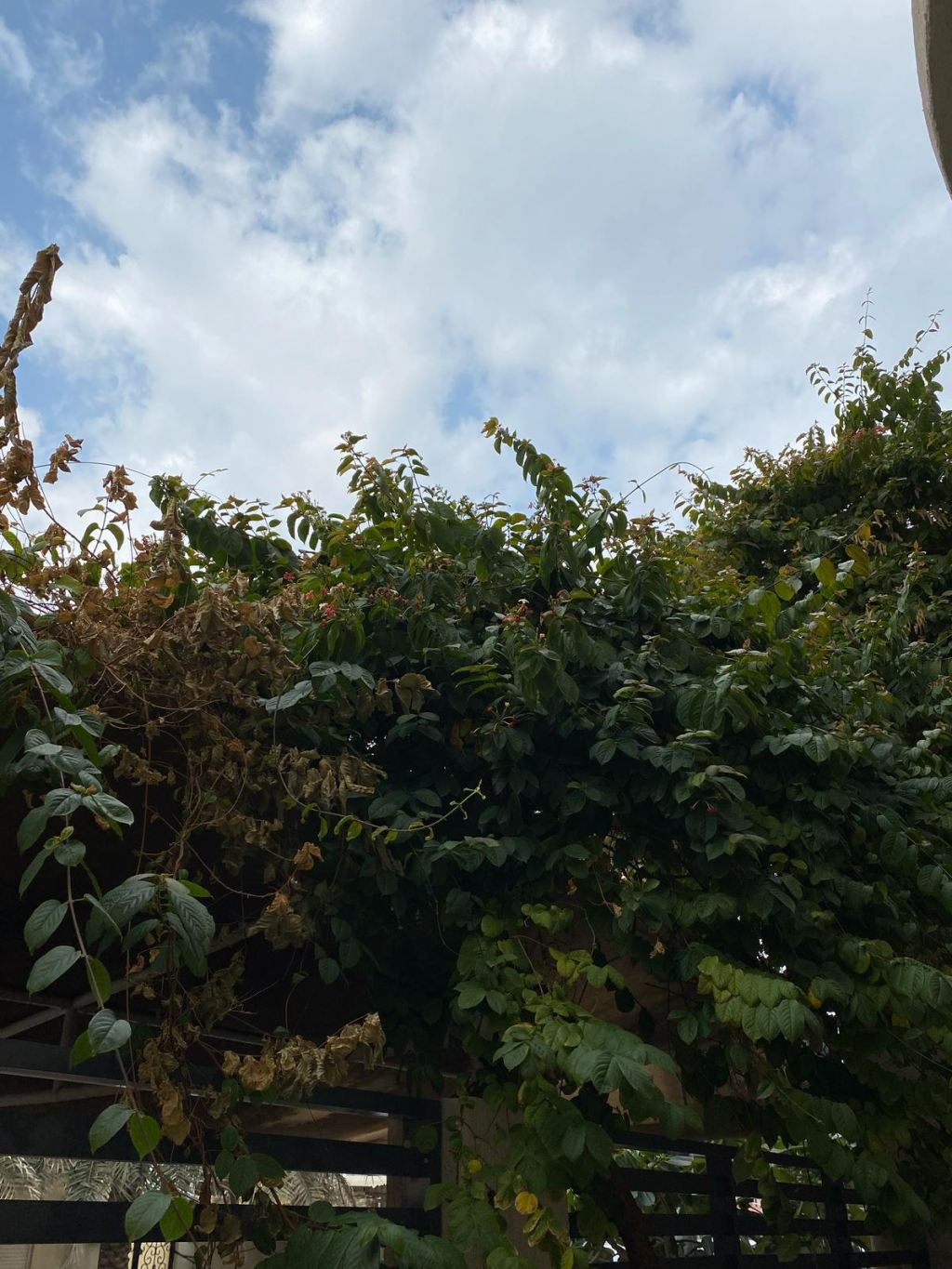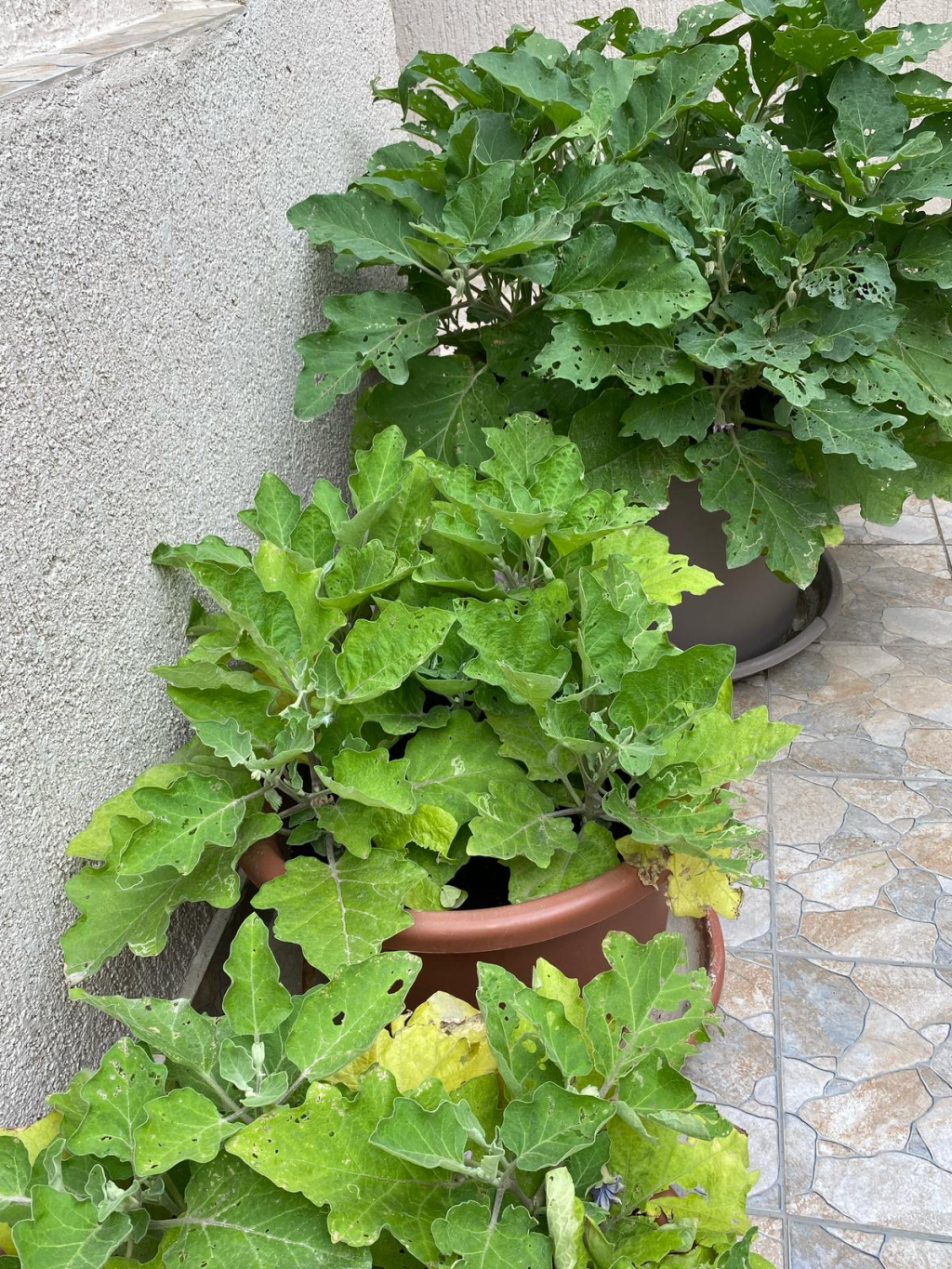 الباذنجان ولم يثمر لسبب وجود مرض وقد اشترينا له دواء وقصت هذه الأوراق
