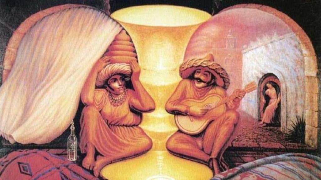 وفي رأس المرأة رجل لم أعرف ماذا يحمل فوق رأسه وزجاجة ...هذا الي شفته 😃