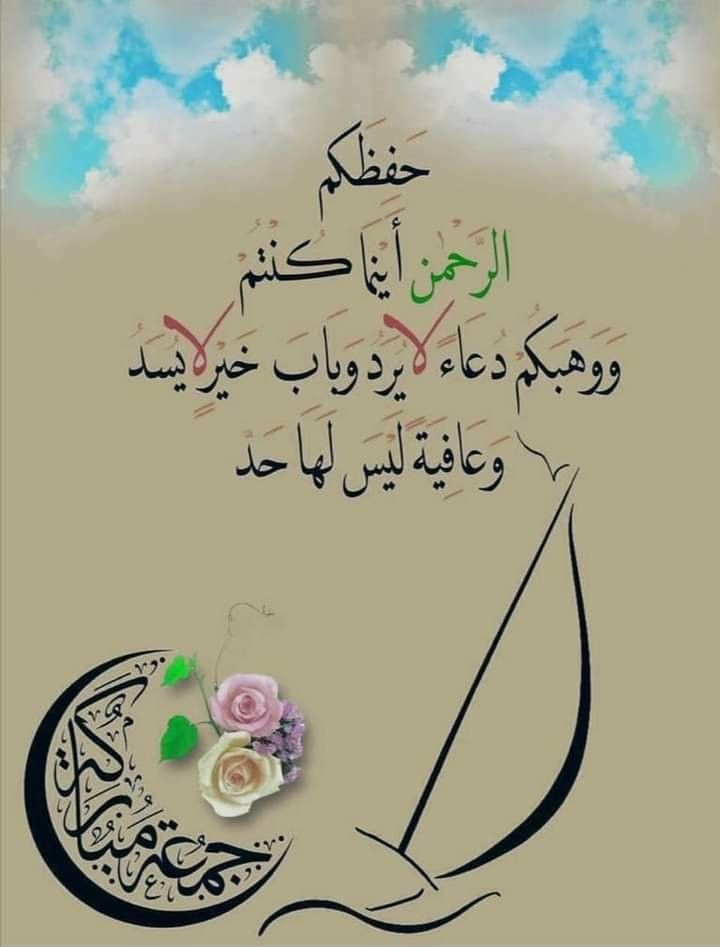 يارب إذا كان عفـوك يمحو الذنوب فكيف ودكّ ؟! وإذا كان ودك يضـيءُ القلـــوب فكيف حبك ؟! وإذا كان حبك يدهش العقـول فكيف قربك ؟! وإذا كان قربك يزيل الهمــوم فكيف النظـر إلى وجهك ؟! اللهـم إنَّي أسألك لي ولمن أحبهم فيك ، عفـوك .. وودك.. وحبـك .. وقـربك ، ومغفرتك ، ورحمتك ، ولذة النظر إلى وجهك الكريم .. جمعة مباركة لكل الاحبة