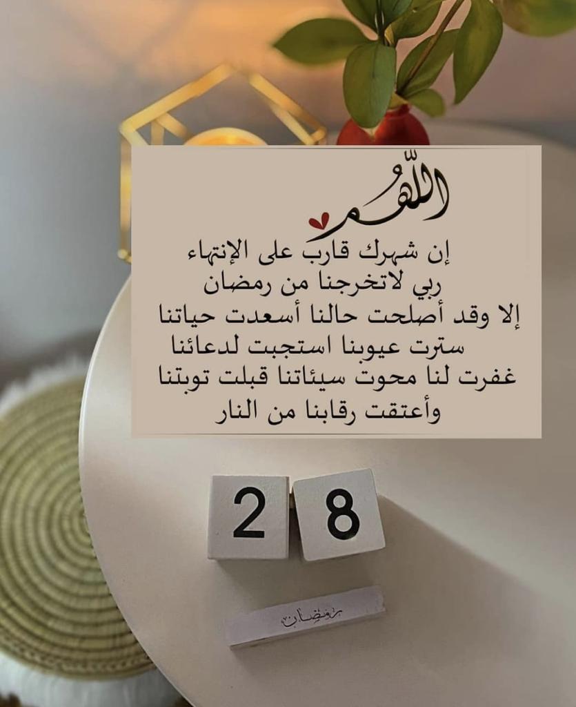 اللهم تقبل منا الصيام والقيام وصالح الأعمال انك سميع مجيب .. اللهم انك عفو تحب العفو فاعف عنا .. اللهم لا تجعل هذا اخر عهدنا برمضان .. وأعده علينا أعواما عديدة مديدة ونحن بصحة وعافية وكل من نحب 🙏🏻❤️اللهم تقبل منا الصيام والقيام وصالح الأعمال انك سميع مجيب .. اللهم انك عفو تحب العفو فاعف عنا...