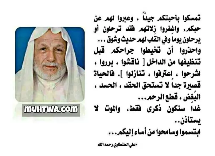 تذكروا الحياة قصيرة .. فسامحوا .. وتمسكوا بأحبتكم رحم الله الطنطاوي وغفر لهتذكروا الحياة قصيرة .. فسامحوا .. وتمسكوا بأحبتكم رحم الله الطنطاوي وغفر له