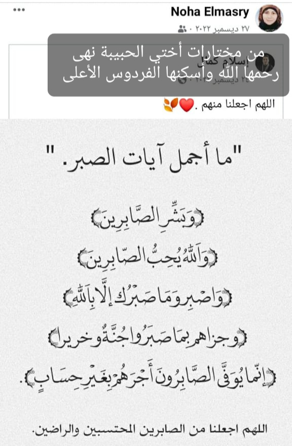 لكي يحافظ القلب على سلامته ونقائه، عليه الصمود في وجه تقلبات الدهر ، والثبات تجاه المغريات التي تغير صفاءه . اللهم اغفر لنهى وارحمها واجعل مثواها الجنة . بوركت وحفظك الله حنين ⚘💚لكي يحافظ القلب على سلامته ونقائه، عليه الصمود في وجه تقلبات الدهر ، والثبات تجاه المغريات التي...