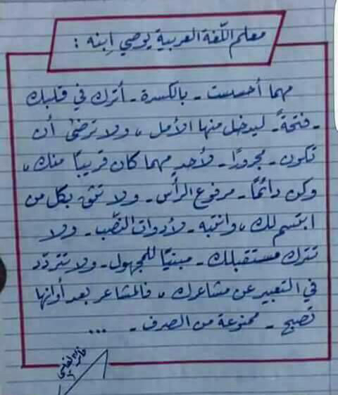 شاركوني قراءة وصيــــة معلم اللغة والأســلوب الجميل في طريقة كتابتها