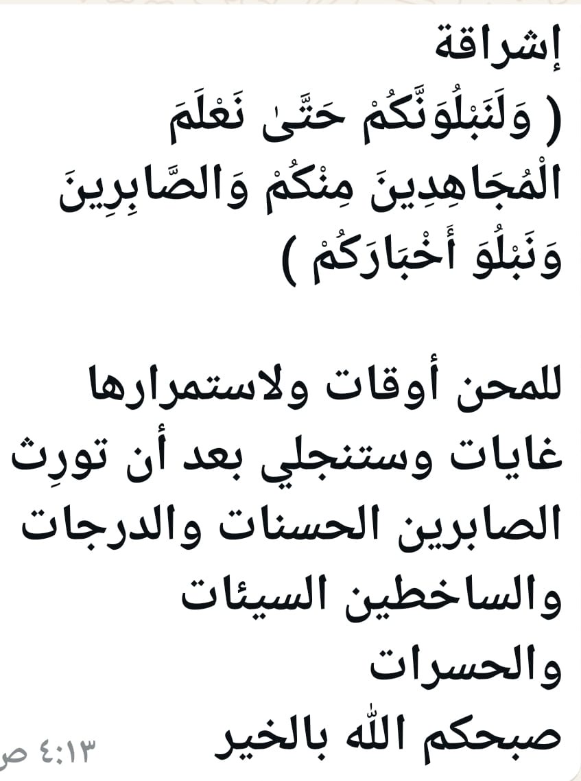 أصبحنا بنعمة الله مُتنعمين، وبفضله ورحمته هانئين، اللهُمَّ صباح بُشرى تطرق أسماعنا، وفرحة تغمر قلوبنا، وطمأنينة نعيش بها أيامنا 🤍