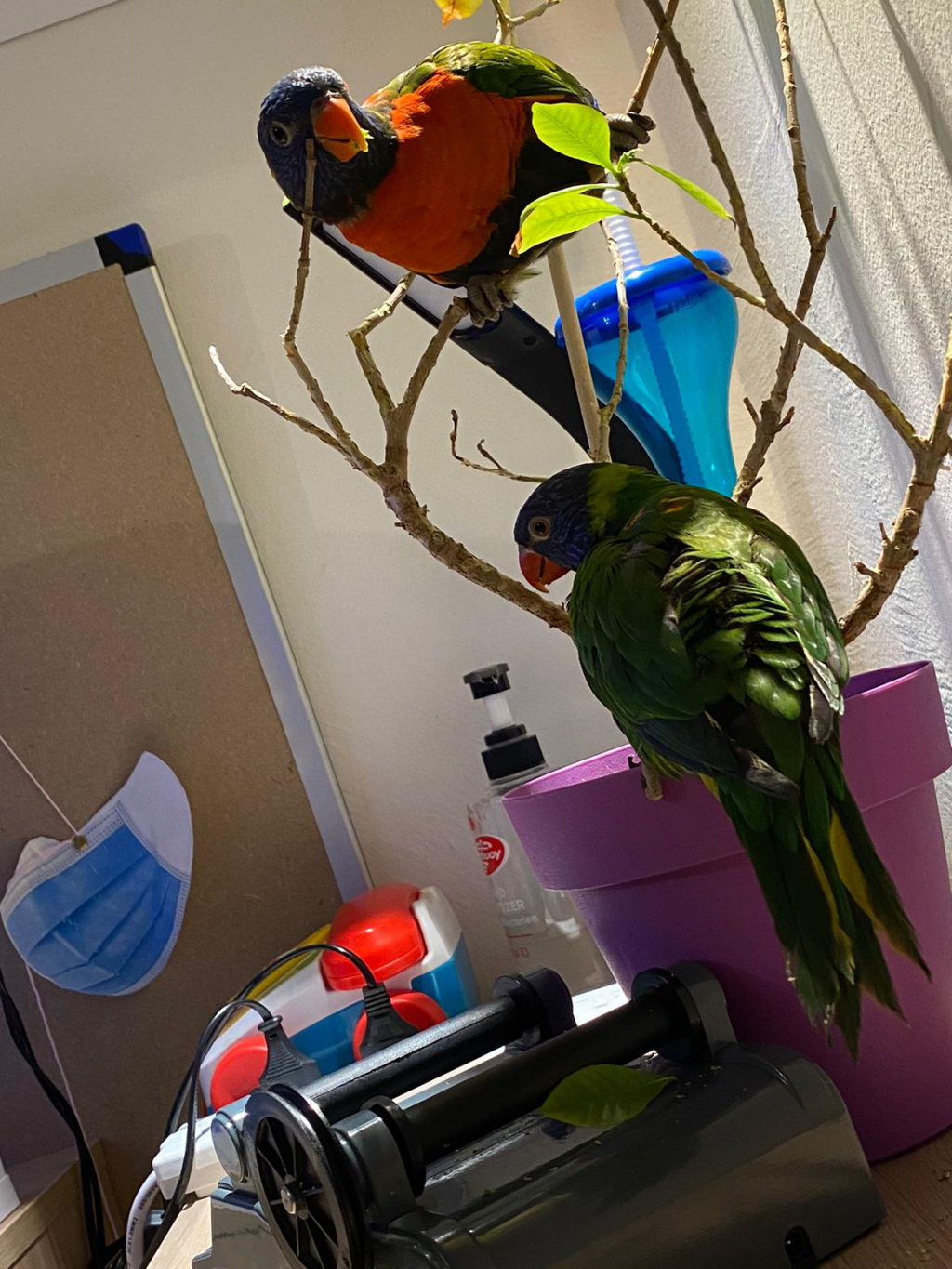 غالياتي .. أنا لاأحب حبس الطيور ولا أربيهم .. لكن هذين الطيرين وضعتهما الأقدار في طريقي .. ولأنهما يحبان عشرة البشر .. حملت نفسي تعب جديد في الترويح عنهما كل صباح لما يقارب الساعة وإطعامهما .. وأحببتهما الآن ولا مفر ولم يعد يومي بعد الصلاة والذكر يبدأ الا بهما .. وهذه أحدث صورة لهماغالياتي .. أنا لاأحب حبس الطيور ولا أربيهم .. لكن هذين الطيرين وضعتهما الأقدار في طريقي...