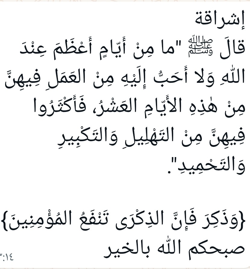 فيهنَّ أحبُّ إلى اللهِ من هذه الأيَّامِ العشرِ.🕋
