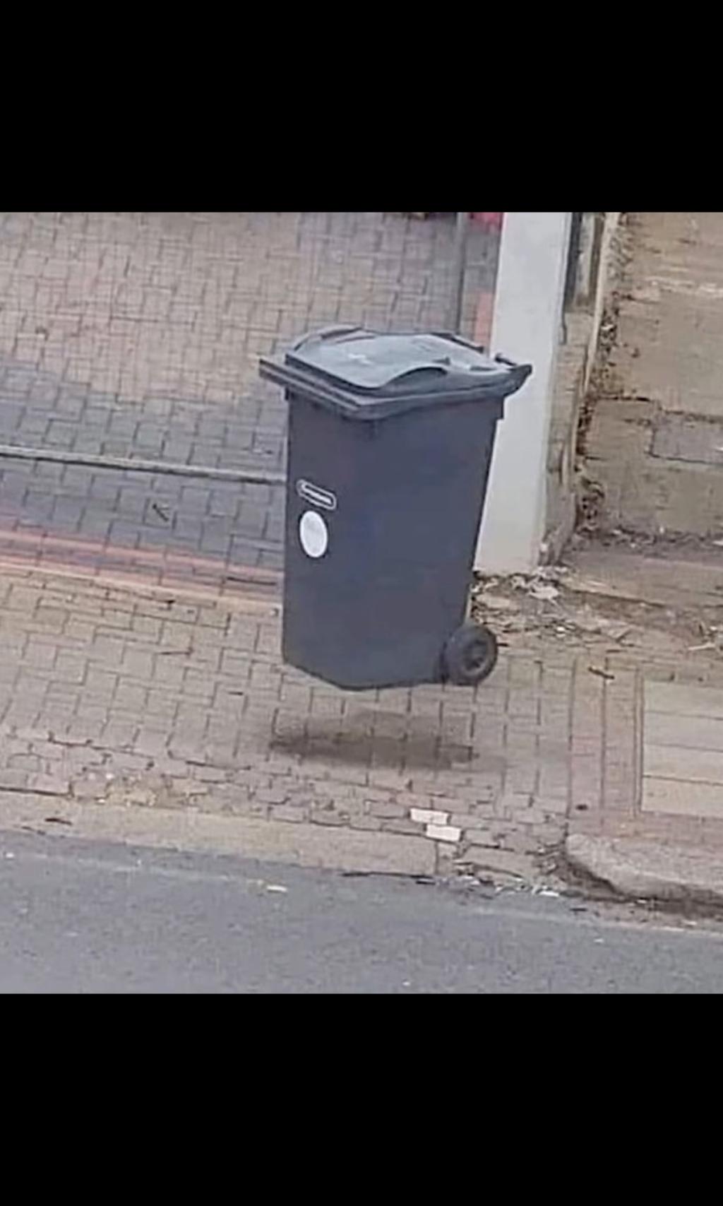 ماذا ترى؟إذا ظننت أن حاوية القمامة تطير، فقد حان وقت زيارة طبيب العيون!في الواقع… إنها مجرد قطعة مبللة على الأرض