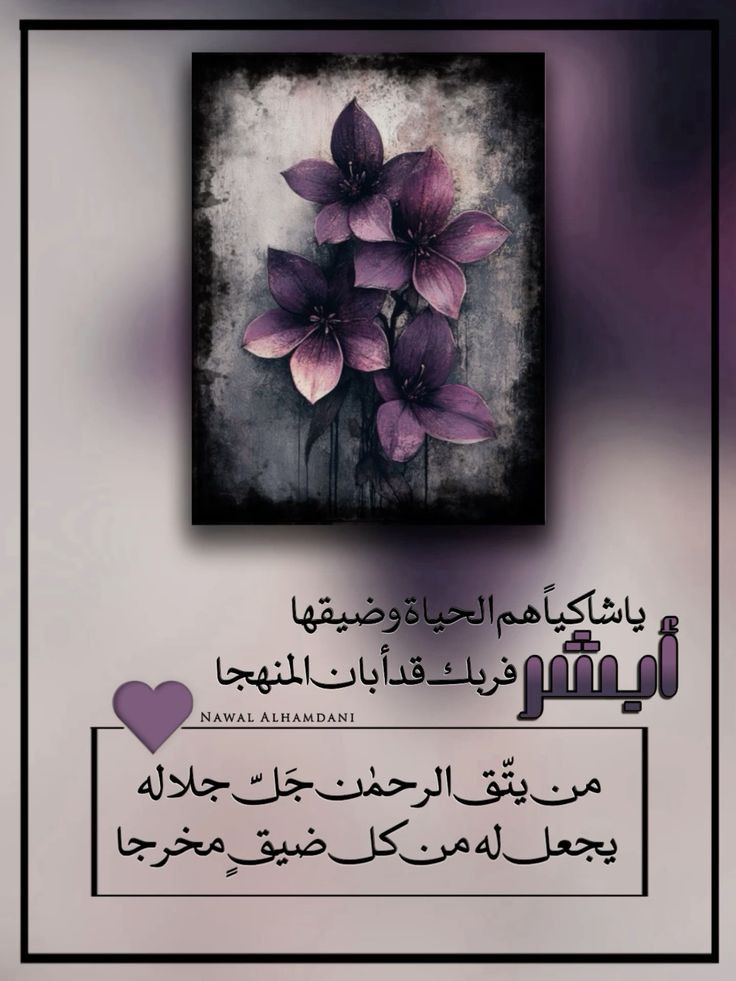 لا تتمنَّ حياة أحد !! أنت تعلم ما أعطي الناس .. ولكنك تجهل مما حرموا ! غلاف الكتاب شيء .. ومضمونه شيء آخر . الشهرة امتحان رسب فيه كثيرون والمنصب فتنة أعمت كثيرون عما خلقوا له ! والمال ساحر أخذ بلب قارون .. أنت في أنسب مكان لك فلا تقارن حياتك بحياة غيرك !!! إن المشغول بالمقارنة محروم من السكينة ! ( نَحْنُ قَسَمْنَا بَيْنَهُم مَّعِيشَتَهُمْ ) .. صباح الورد 💐لا تتمنَّ حياة أحد !! أنت تعلم ما أعطي الناس .. ولكنك تجهل مما حرموا ! غلاف الكتاب شيء .....