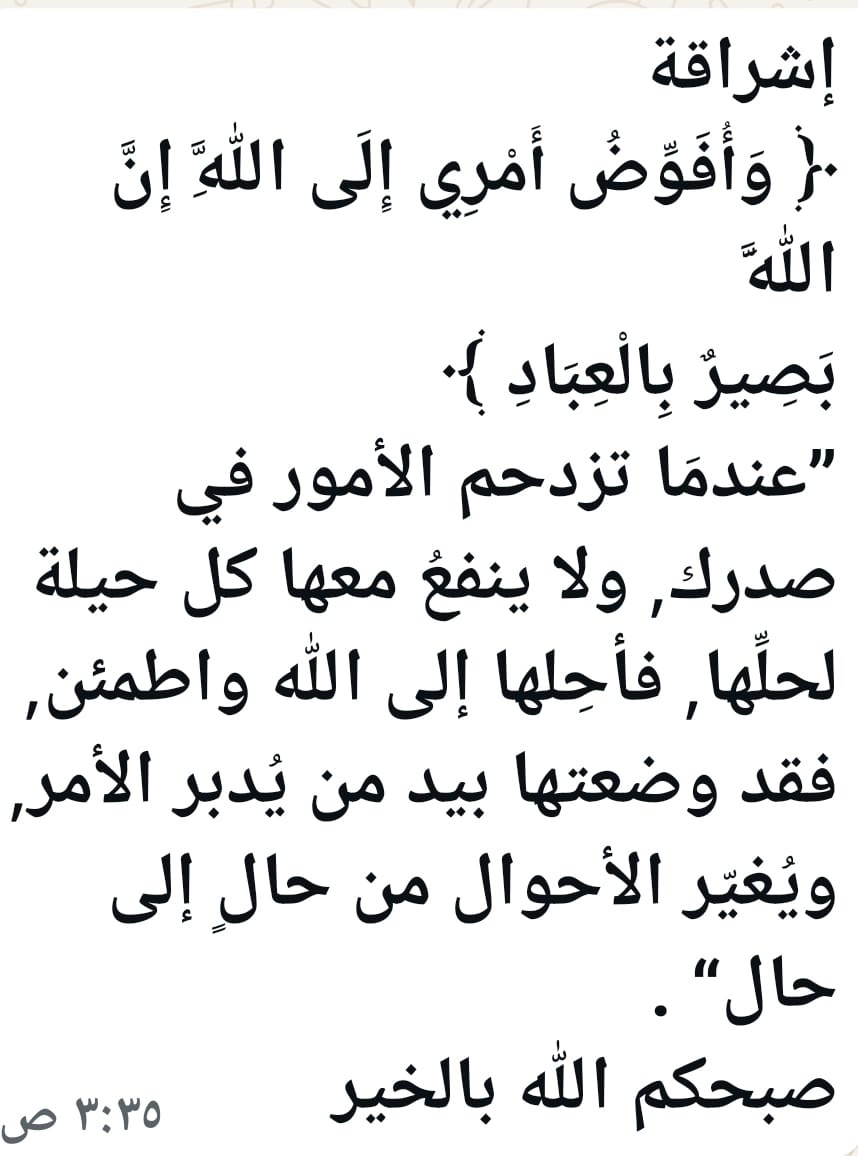 صباح الخير حکمة اليوم* ﻟﻴﺲ ﻛُﻞ ﻏﺎﻟﻲ ﺑﺎﻗﻲ،* *ﻭ ﻻ ﻛُﻞ باقي ﻏﺎﻟﻲ ﻓﺂﺣﺮﺹ ﻋﻠﻰ ﻏﺎﻟﻴﻚ ﻗﺒﻞ ﺃﻥ ﺗﻔﻘﺪﻩُ فالذي ﻳﻀِﻴﻊ ﻣﻦ ﺑﻴﻦ ﺃﻳﺪﻳﻨﺎ ﺃﺣﻴﺎﻧًﺎ ﻻ ﻳﻌُﻮﺩ*صباح الخير حکمة اليوم* ﻟﻴﺲ ﻛُﻞ ﻏﺎﻟﻲ ﺑﺎﻗﻲ،* *ﻭ ﻻ ﻛُﻞ باقي ﻏﺎﻟﻲ ﻓﺂﺣﺮﺹ ﻋﻠﻰ ﻏﺎﻟﻴﻚ ﻗﺒﻞ ﺃﻥ...