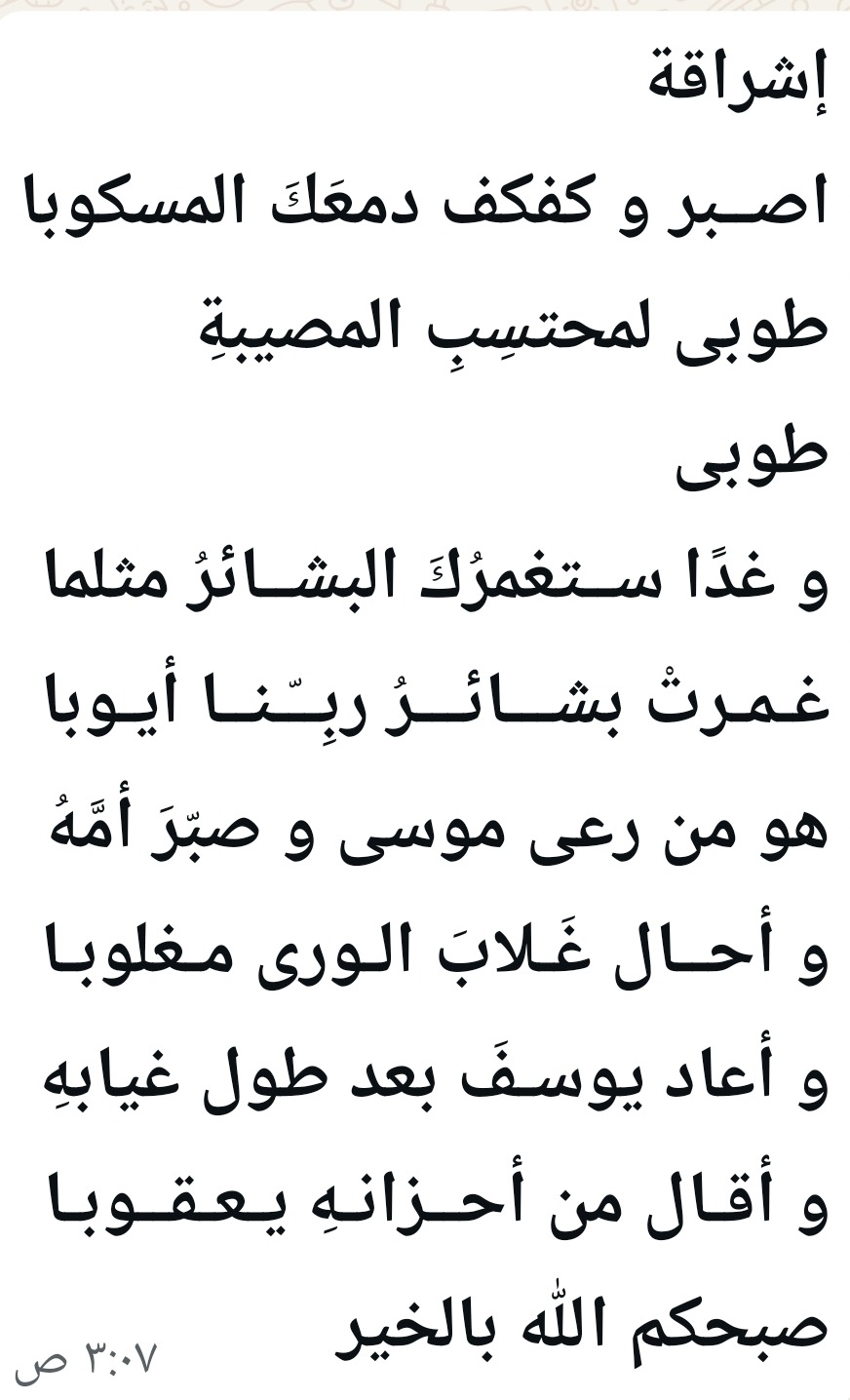 ربي أسعد هذه الوجوه الطيبه واجعلني واياهم ممن عفوت عنهم وغفرت لهم ولوالديهم ولكل عزيز على قلوبنا ... وجميع المسلمين.