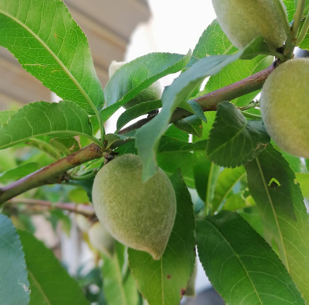 شوفي هذي ثمار الخوخ في بدايات ظهورها
