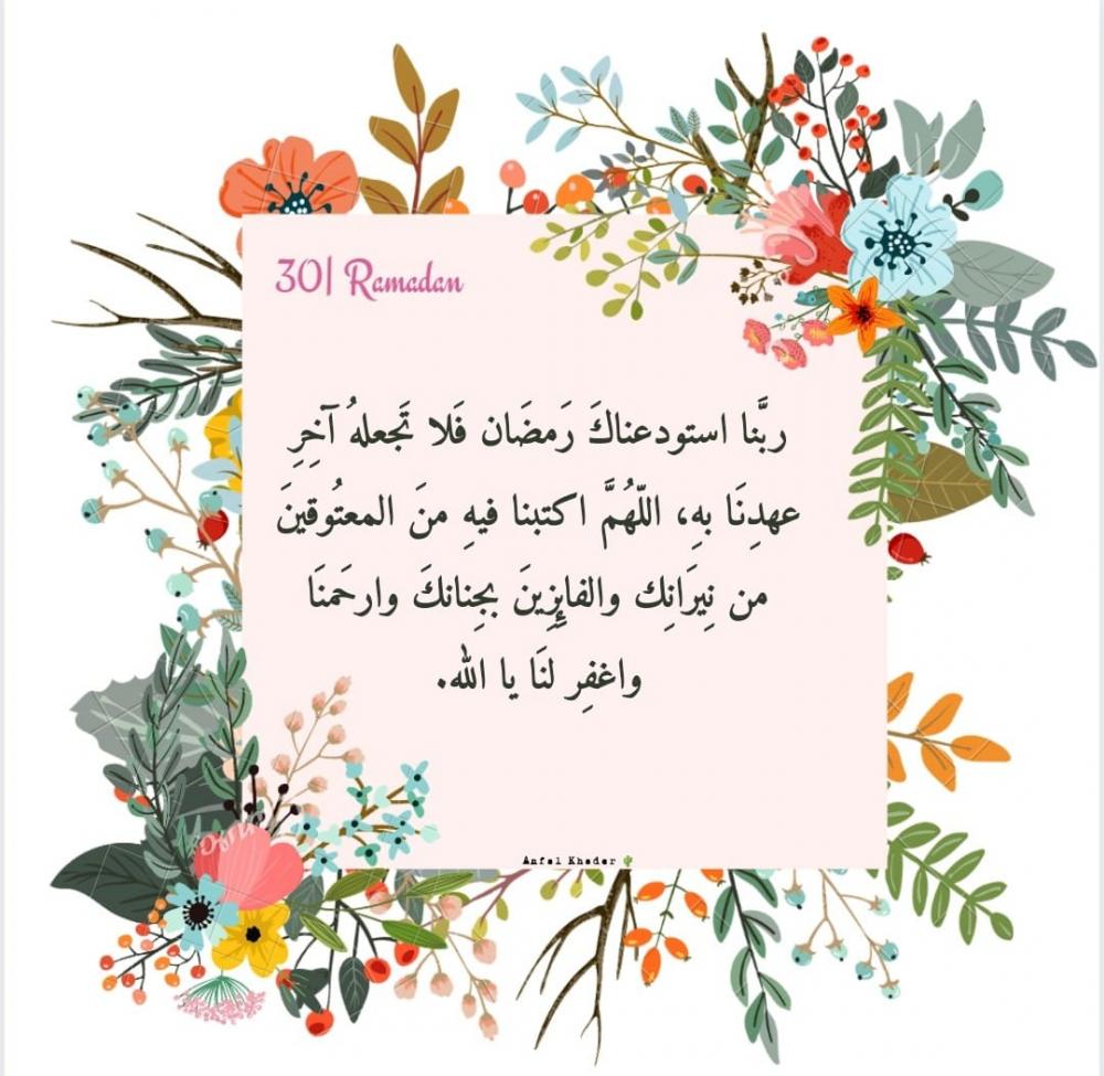 اللهم اختم رمضان بعفوك واعتق رقابنا من نيرانك واجعلنا فيه من المقبولين وتقبله منا وأعده علينا أعوام مديدة لا فاقدين ولا مفقودين.