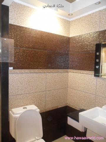 وبعد الديزاين هذا حلو يعني تخلين لون البلاط كله واحد إلا خلفية المغاسل وخلف البانيو وخلف الأفرنجي وأنتي بكرامـــــــــــه