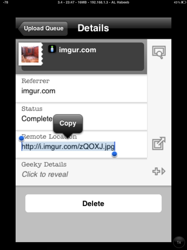 وبالنسبه للتحميل لقيت برنامج تحميل صور على الايباد والايفون روعه وسريع اول ماتدخلي على البرنامج تلقي علامه زئد تدخلين عليها وتختاري الصوره من ملف الصور عندك بعدين تطلع لك الصوره اضغطي عليها وراح يطلع لك رابط للصوره تحت سوي له اختيار كل بعدين نسخ للرابط وروحي الصقيه بالمنتدى وهذي الصور توضح البرنامج اسمه واستعماله
