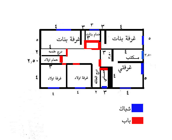 وماينفع احط الحمام على الارتداد حقنا لان كذا راح يكون فيه غرفه بدون شباك :unhappy: