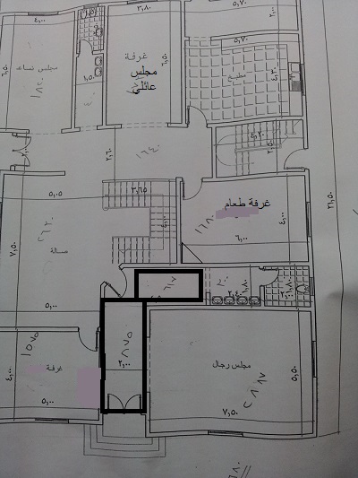 بالنسبة للدور الارضي .. فيه مجلس رجال وغرفة طعام (مقلط) غرفة نوم لضيوف