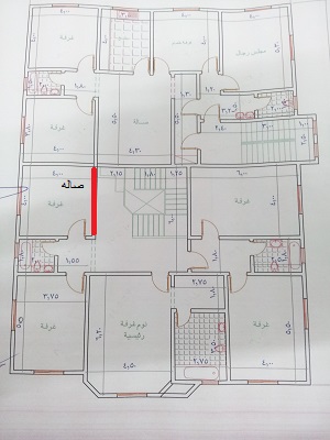 الغرفة الي محطوط فيها خط احمر كانت صاله مفتوحة بس سكرنها وخلينها غرفة جلوس ونستفيد منها بعدين للعيالنا اذا كبروا