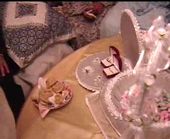 هذه سلة من جزئين الجزءالاسفل حامل الحلويات البومبون والجزء العلوى حامل لخواتم الخطوبة او الفرح