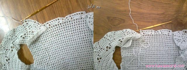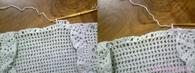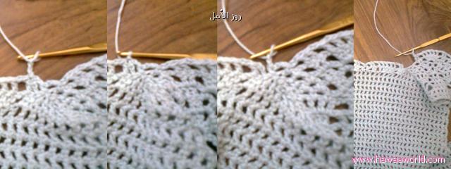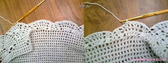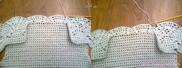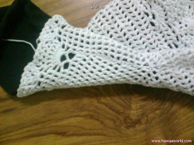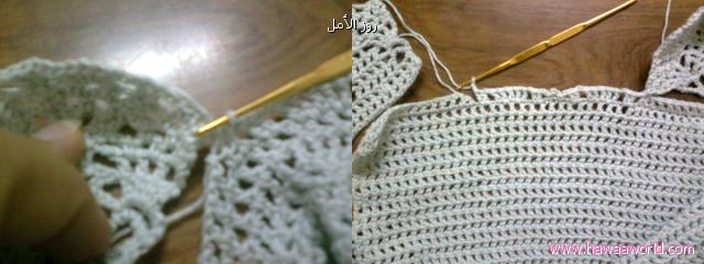 شبك الأكتاف ومواصلة نقشة الحافه مع حردة الرقبه