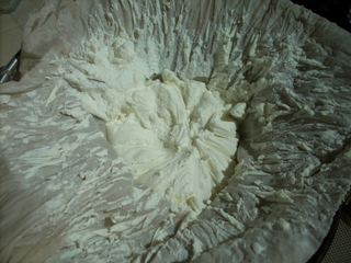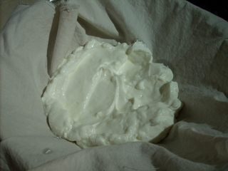 نحتاج قماش ثوب ابيض نقي فوق اناء . و الزبادي يستقطر ليلة كاملة. في الصباح سيكون عاقد و جامد بعض الشيء. عندما يتصفى من الماء نزيد الملح نعمل كويرات صغار و نعبيهم في jar و نزيد زيت زيتون من الفوق.