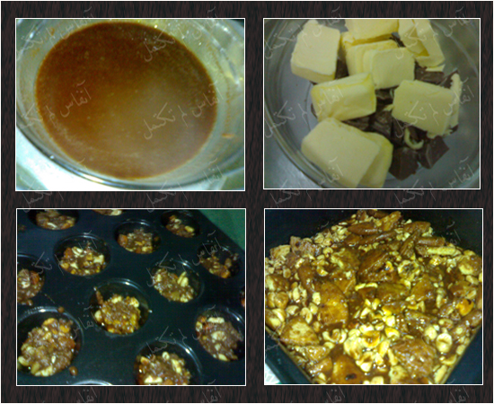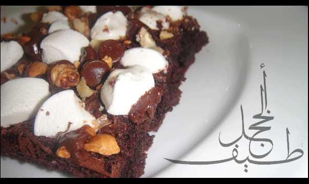 بعد ان يخرجمن الفرن توضع قطع المارشملووالمكسرات والشكولاته