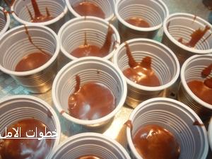 3- نسكب عليه الشوكولاته .. يساوي السطح و تترك بالثلاجه لتبرد تماما ..