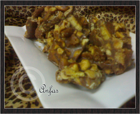 2- نخلط البسكويت مع البندق وتوضع في صينية صغيره ..