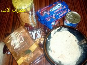نخلط الحليب والاريو المطحون والبسكوت والقشطة