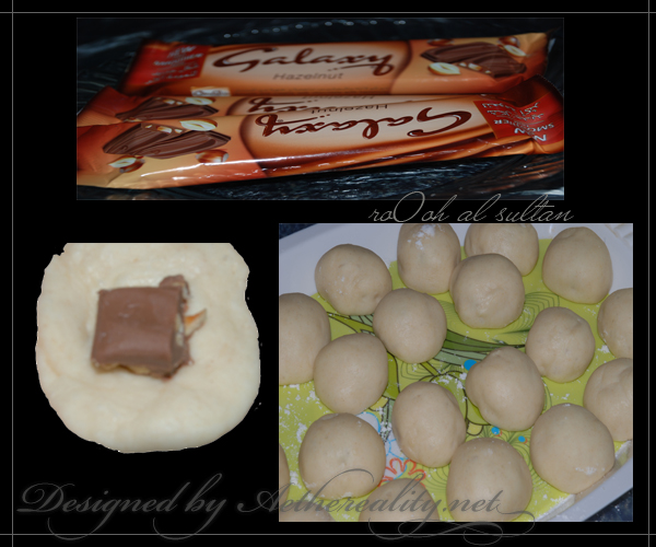 بعد ماتتخمر نقسمها كور صغيره ونحشيها بقطع جالكسي اللي فيه ست قطع وكل قطعه نقسمها قسمين