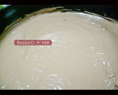 3- نسكب الخليط على الكيك وندخلها الفريز لمدة 15 دقيقه حتى تجمد ..