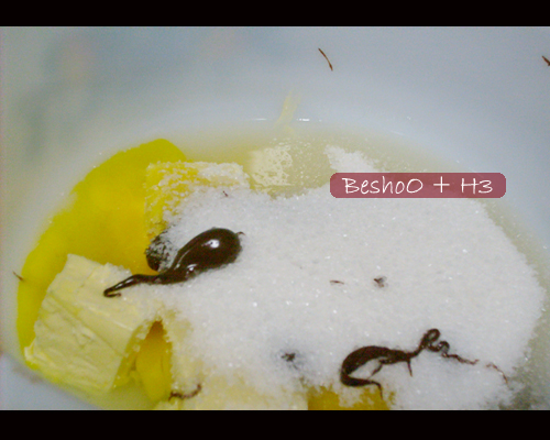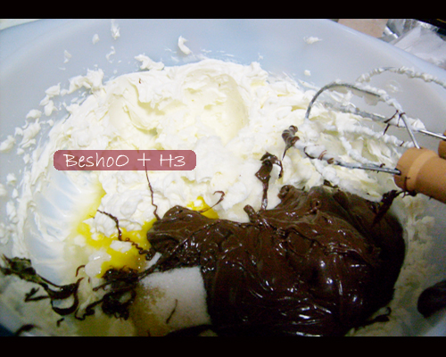 اخفقي البيض لين ما ينفش وبعدين حطي سكر وبعدها دقيق وبعدين اضيفي الشكلاطة على شوي شوي عشان ما يتحول العجين لقطع بيض مستوي