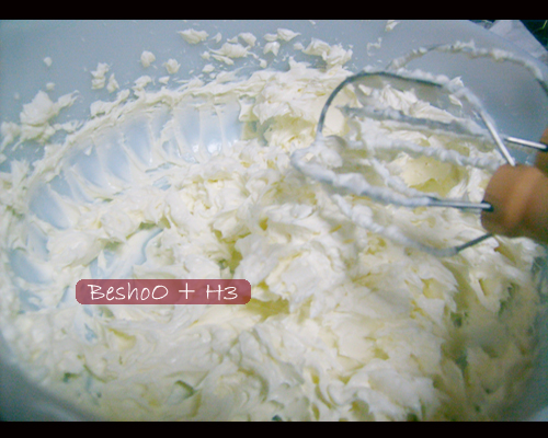1 ـ نخلط(جبن مسكربون..وان لم يتوفر اي جبن كريمي وعلبة قشطة،