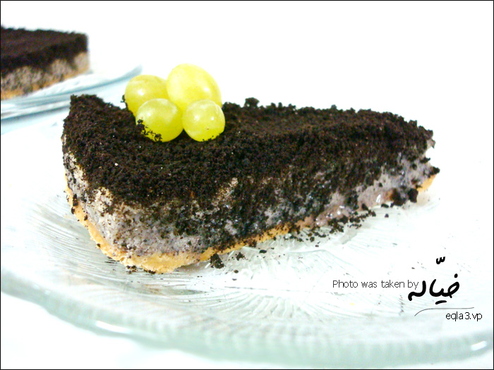 نحط قصدي نضع الخليط فوق الكيك.. وندخله الفريزر لمدة ساعه او اكثر ..