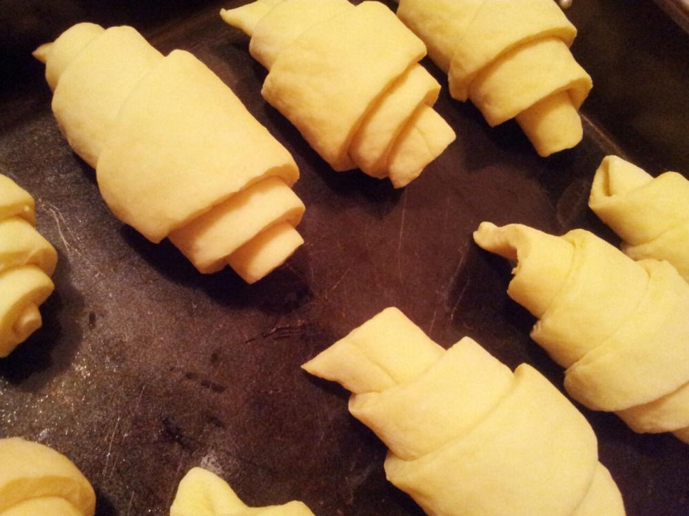 وقسمتها ثلاث اجزاء او جزئين حسب حجم الكرواسونة اللي تبيه