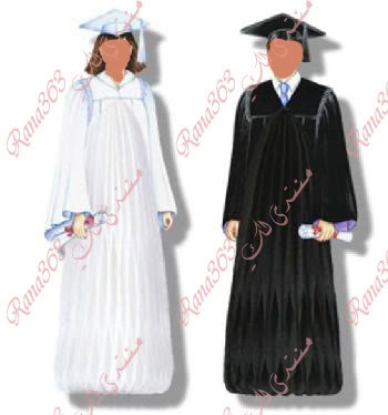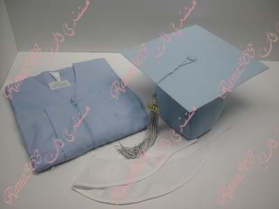 بالامكان يكون لون الروب اسوداو كحلى و شرائطه ملونه وبالامكان يكون الروب كله بلون ملون وليس اسود