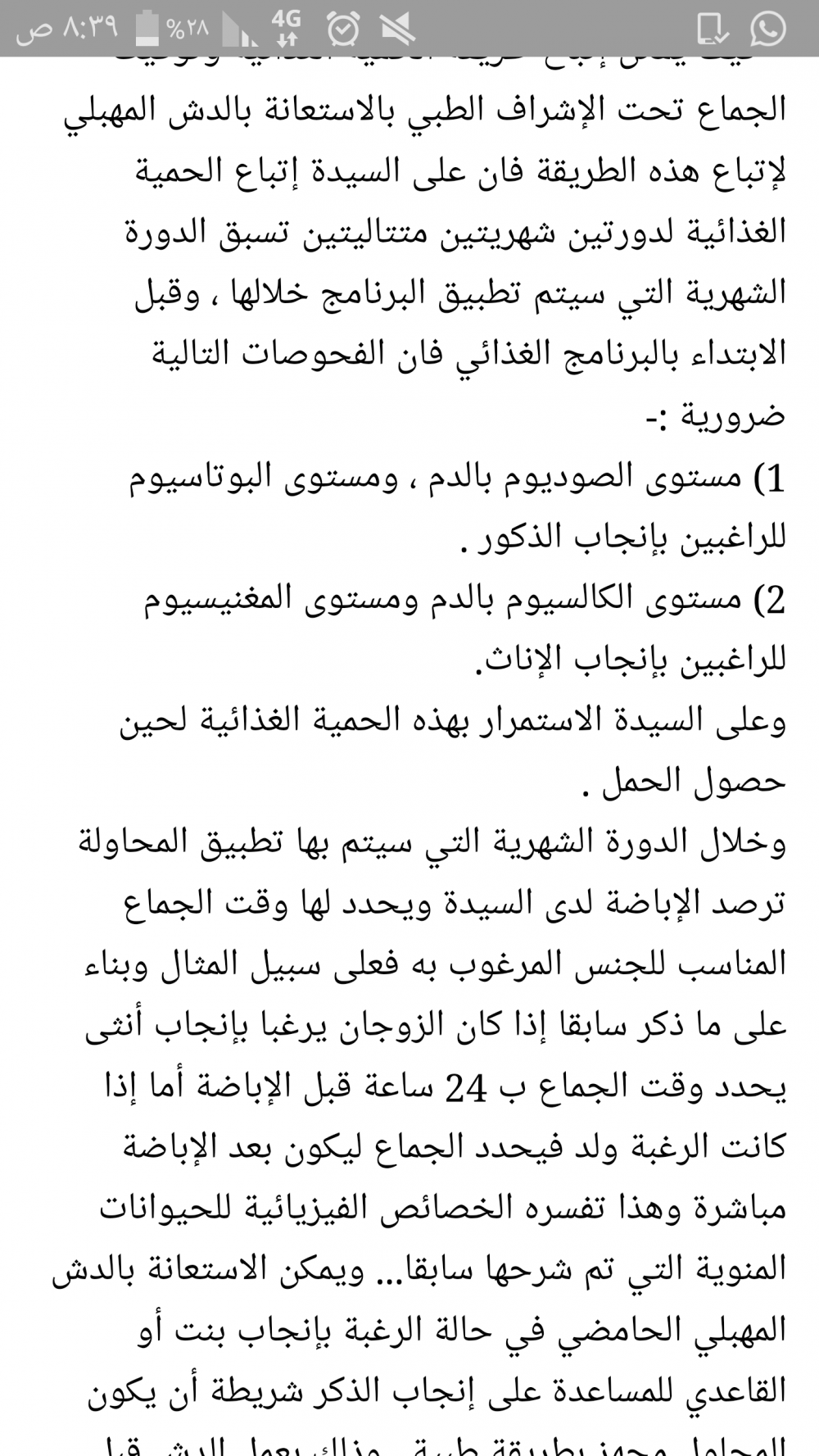 انا كنت مدمنه جبن و حلويات لدرجه عادي أفطر و اتغدى و اتعشى خبز و جبن او حلا و الحمدلله ربي رزقني 3 بنات و بعد بنتي الاخيره استخدمت المانع لست سنين و لمن فكيته ماكتب ربي لي الحمل و بعد 3 شهور تعبت و لمن حللت طلع معي السكر و معدله التراكمي عالي جدا فمنعتني الدكتوره من الحمل الين ينخفض المعدل و امتنعت عن الجبن بكل أنواعه و الحلويات و الدقيق الابيض و الزيوت و كنت اكثر خضار و فواكه و بعد 6 شهور الحمدلله أكرمني ربي بالحمل و الجماع ما افتكر بالضبط متى كان لكن انا دورتي كانت 22 و بحساب السونار كل يوم 10 ادخل شهر جديد و الدكتوره تقول كل يوم 5 و استخدمت بعد غسول البكينج بودر ( جارتي واخواتها استخدموه و جابو اولاد )