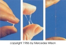 الصورة الثالثه يصبح شفاف وعنده قابليه للمط لمسافه أبعد .. وبعد هذا الإفراز تبدأ الإباضه