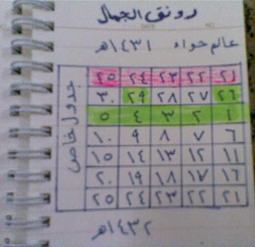 هذا جدولي بعد ما حددت لي الأخت العزيزة رونق الجمال