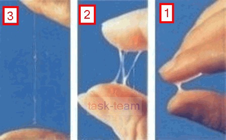 الصورة الثالثة (3) : يصبح شفاف وعنده قابليه للمط لمسافه أبعد تصل الى 8-10 سم .. وبعد هذا الإفراز تبدأ الإباضه (وهذه ثالث علامه نعتمد عليها في توصياتنا)