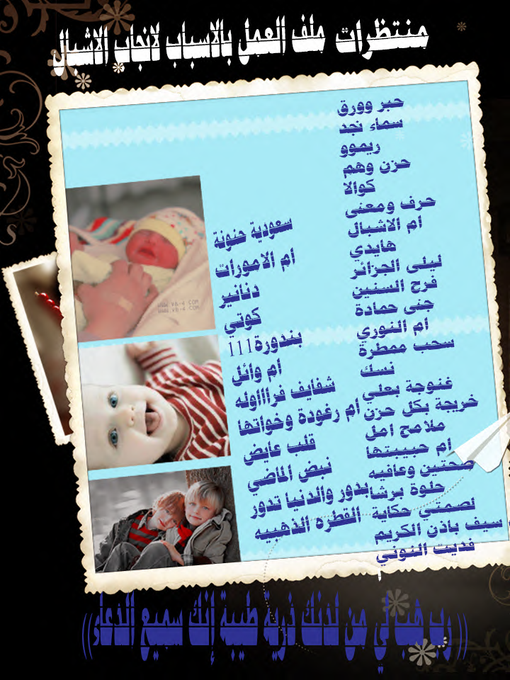 غند الدنيا ربي يبارك لك بذريتك ويارب يطلو علينا الغالين الطيبين ام الاشبال ومبروكه وحبوره وينورونا وربي يكون بصحه وعافيه