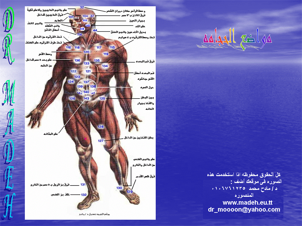 منتصف الكتف الايمن 4 -خلف القلب 5
