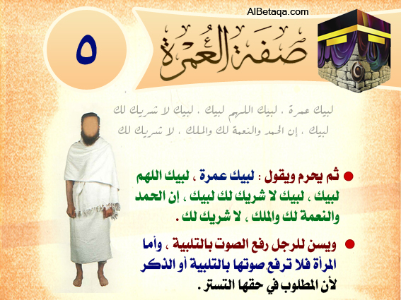 * يستحب أن يتلفظ المعتمر بقول ( لبيك عمرة ) عند إحرامه.