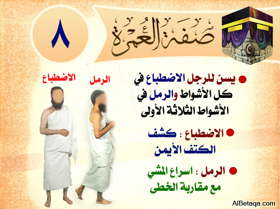 * يجعل المعتمر الكعبة عن يساره أثناء طوافه .