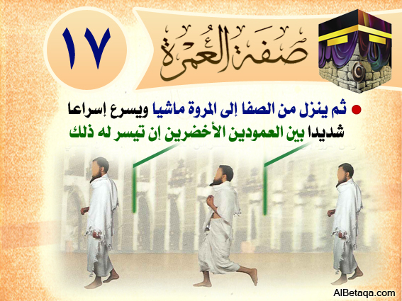 * يسن إذا وصل الساعي بين العلمين الأخضرين أن يُسرع في المشي