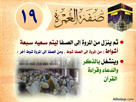 * السعي سبعة أشواط بين الصفا والمروة يبدأ من الصفا وينتهي بالمروة